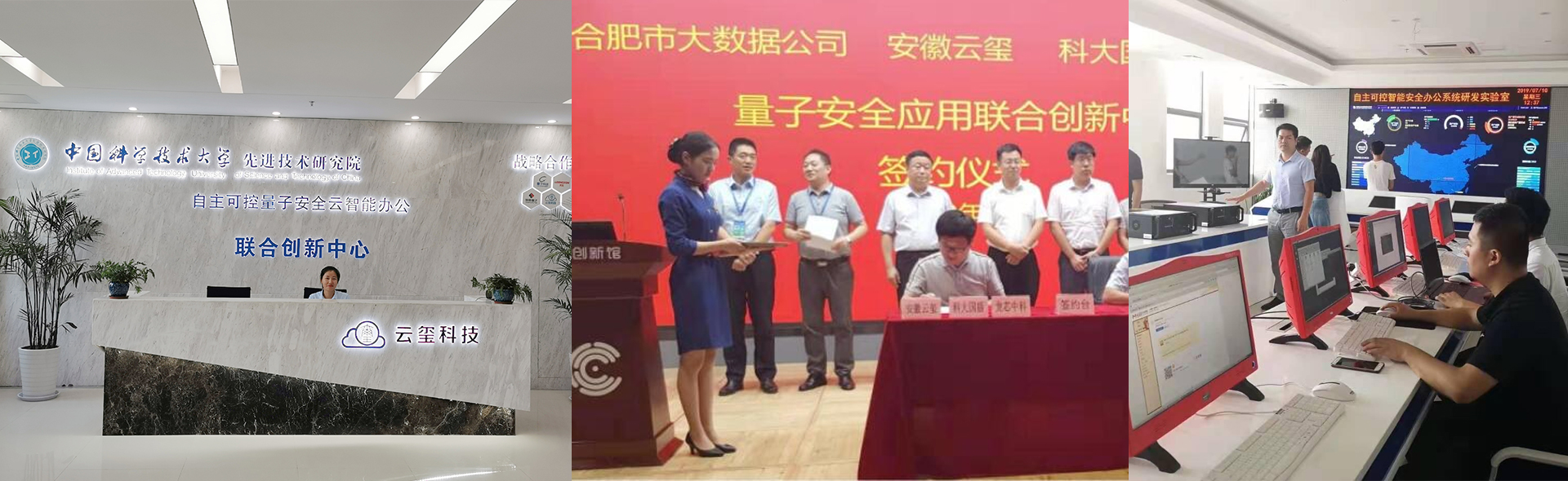 自主可控量子安全云智能辦公聯合創新中心由云璽量子科技、市大數據公司、科大國盾和龍芯中科聯合成立,共同開展大數據+量子安全應用相關方向研究及量子安全應用產品試點推廣。截至目前,該中心已經合作研發覆蓋云、管、端的產品。
