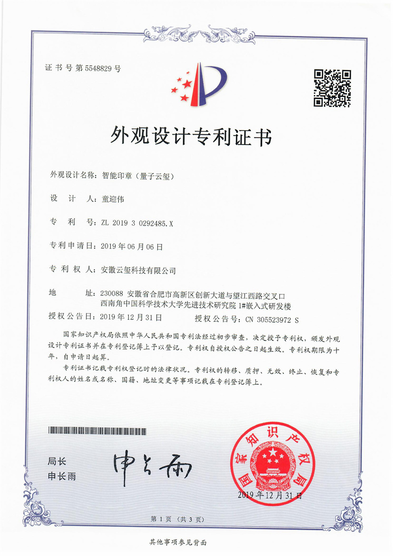 公司原創發明一體式智能印章技術,引領國內外新一代智能印簽創新變革。獲中日韓多項發明專利,徹底解決了實體印章和電子印簽管控的社會難題,獲國務院國資委全國央企熠星二等獎。公司聯合國家信息安全產品認證中心、公安部三所、信通院、中國印章協會等,主導起草了行業首個智能印章安全認證標準和智能印章產品標準,引領了智能印章行業發展。