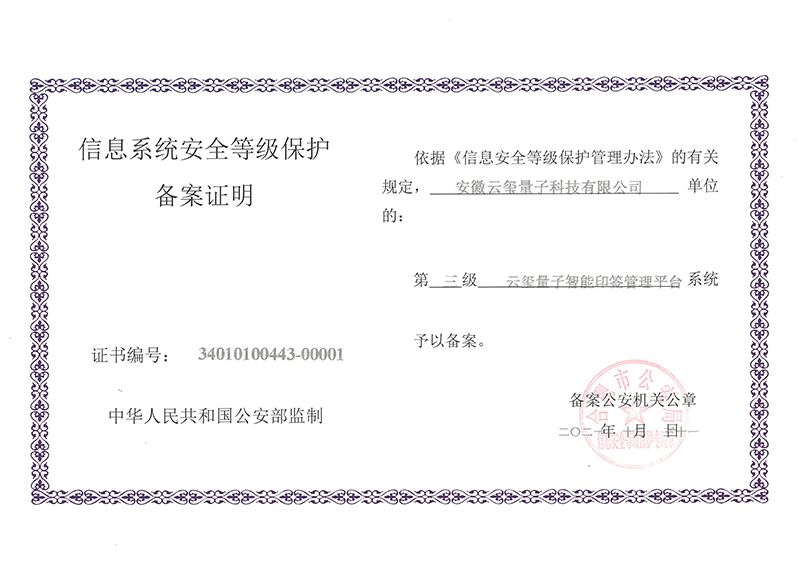安徽云璽量子科技有限公司是合肥市量子信息產業重點企業,國家信創工委會成員企業,中國信創500強企業。主營業務包括量子安全智能印簽、量子安全智能辦公、量子安全云服務,為政企客戶提供量子安全整體解決方案。